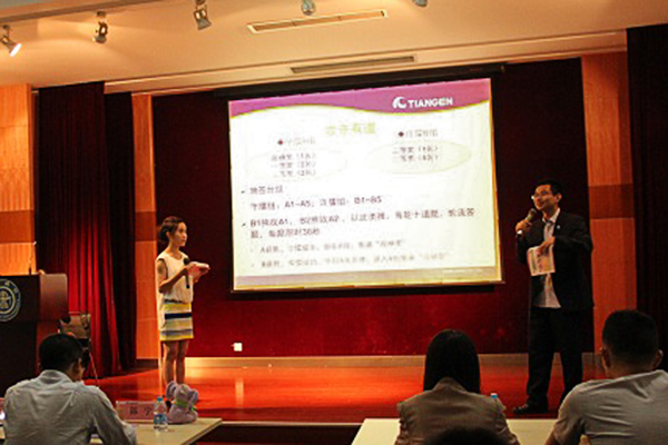 5月22日晚,由437bwin必赢国际官网研究生会主办、天根生化科技有限公司赞助的“天根向上”趣味生物知识竞赛决赛在生物药学楼树华多功能厅举行。活动邀请了437bwin必赢国际官网学生办张燕红老师和天根公司销售经理陈宁先生作为嘉宾,由研究生会林巾琳和天根公司代表刘帅共同主持。