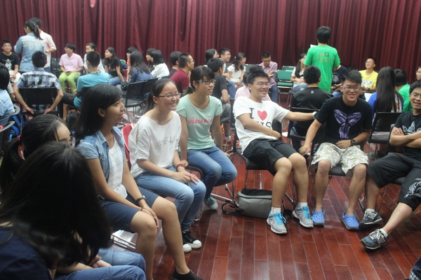 随后进行的组间游戏引入了竞争积分机制,增加了交流与互动,“心口不一”、“谁是卧底”、“踩报纸”等游戏让所有的新生都参与到了活动中来。
