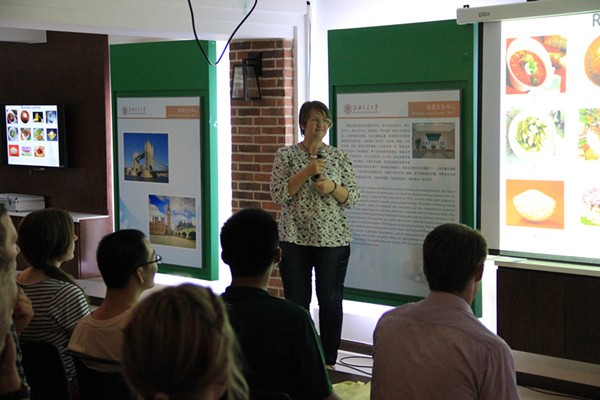 来自俄罗斯的留学生为大家介绍了俄罗斯的民族文化、饮食习惯、现代高等教育等情况。俄罗斯是世界上面积最大的国家,横跨欧亚两大洲。多样的民族也构成了多样的文化,俄罗斯有30余种语言,以及各式各样的文化标志,包括我们最熟悉的克里姆林宫,以及俄罗斯熊,莫斯科地铁等。