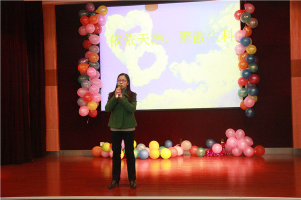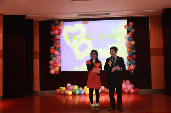 3月19日晚,437bwin必赢国际官网在生物药学楼树华多功能厅举办以“依依天涯,聚散生科”为主题的2014届研究生毕业晚会,院党委副书记郑敏老师、学院学生办部分老师与2014届毕业生们参加了晚会。