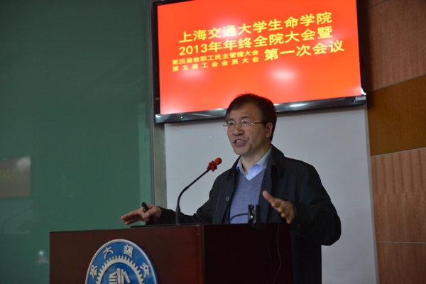 随后,院党委书记仰颐做2013年度党委工作报告,从人才队伍建设、党建工作、团学工作、文化建设和党的群众路线教育实践活动专题五个方面回顾总结了党委的工作情况。学院党委进一步完善人才的引进和培养工作,切实做好基层党建工作与团学工作,营造“鼓励创新、和谐共进”的学院氛围,以党的群众路线教育实践活动为契机,发现问题,解决问题,建章立制,促进学院进一步发展。总结报告还提出了2014年需要重点推进的工作。