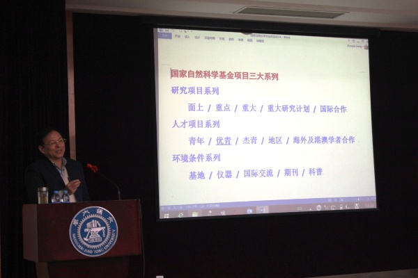 姜宗来首先就国家自然科学基金的基本信息以及评选流程进行了介绍,重点对撰写申请书的严谨性及规范性给出了参考意见。他将自己多年来申报和评审国家自然科学基金项目的体会和经验与在场教师分享,按照申请书要回答好为什么做、做什么、怎么做、做过什么的思路,具体阐述了撰写基金申请书时的重点注意事项。姜教授朴实幽默风趣的讲演风格深深地吸引了听众,让老师们在轻松愉快的气氛中提高了对国家基金委项目申请的认识和理解,也不时为现场带来阵阵领会的笑声。