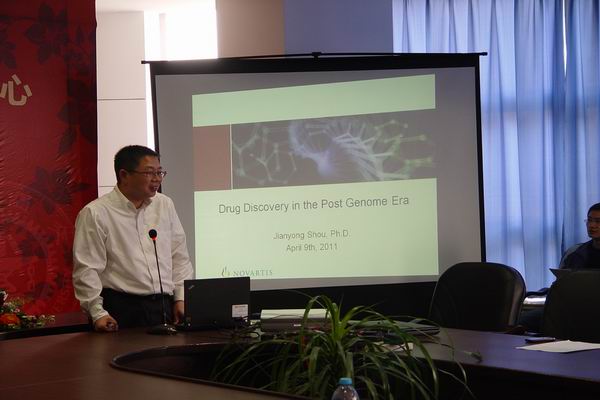 首先,1991届校友寿建勇先生和2001届校友师咏勇老师为大家带来了精彩的学术报告。时任诺华公司中国生物医学研究院高级研究员、干细胞实验室主任的寿建勇先生是生物技术系第一届毕业生,他以“相信梦想,相信奇迹”为主题,结合自己丰富的工作经验和阅历,有条不紊地向大家讲述了药物研发和管理的全过程。在勉励大家要努力学习、投身科研的同时,寿建勇校友也不忘告诫同学们要牢记感恩,不忘责任,从而使学习和工作更上一个台阶。