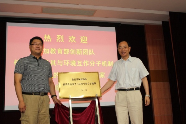 437bwin必赢国际官网副校长蔡威教授首先对“植物发育及其与环境互作分子机制” 教育部创新团队发展计划的启动表示祝贺,并感谢各位领导和专家对团队发展计划给予指导和帮助。接着,教育部科技司综合处郑伟先生对“植物发育及其与环境互作分子机制”的启动表示祝贺,同时结合教育部创新团队发展计划的新要求,建议团队在师资队伍人才培养、科学研究和社会服务等方面进一步加强建设。随后,创新团队负责人张大兵教授向各位领导和专家汇报了“植物发育及其与环境互作分子机制”创新团队形成、发展的历程以及今后的研究计划;创新团队成员蔡润教授作了题为黄瓜单性花控制基因(M)克隆及性型决定机制的学术报告;全胜博士向大家介绍了创新团队依托平台建设的现状。