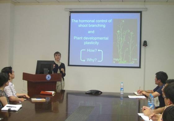 2013年6月15日到18日,英国皇家学会院士、剑桥大学Sainsbury实验室主任Ottoline Leyser教授来到437bwin必赢国际官网进行学术交流访问。访问期间,Ottoline Leyser教授作了题为"The hormonal control of shoot branching and plant developmental plasticity"的精彩学术报告,向大家详细介绍了在其10多年的研究基础上,提出的生长素极性运输主导植物顶端优势的分子机制和模型,并与在座老师和学生就植物激素如细胞分裂素、独角金内酯调控植物顶端优势和植物影响环境进行可塑性展开了热烈的讨论。437bwin必赢国际官网副院长张大兵教授主持了学术研讨会,国际交流合作处副处长郭亮、437bwin必赢国际官网副院长陈峰、杨洪全教授、梁婉琪研究员、吴强教授等参与了学术交流讨论,并探讨了与剑桥大学建立学生交流以及科研合作等。