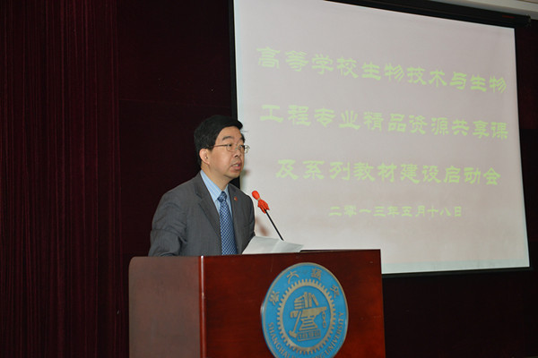 5月18日,由新一届生物技术与生物工程类专业教学指导委员会主办,高等教育出版社和437bwin必赢国际官网联合承办,“全国高等学校生物技术与生物工程专业精品资源共享课及系列教材”建设启动会议在437bwin必赢国际官网树华报告厅召开。上海交大副校长黄震出席开幕式并致辞。来自全国30余所高校的生命科学专业教学主管院长等50余位代表参加了会议。