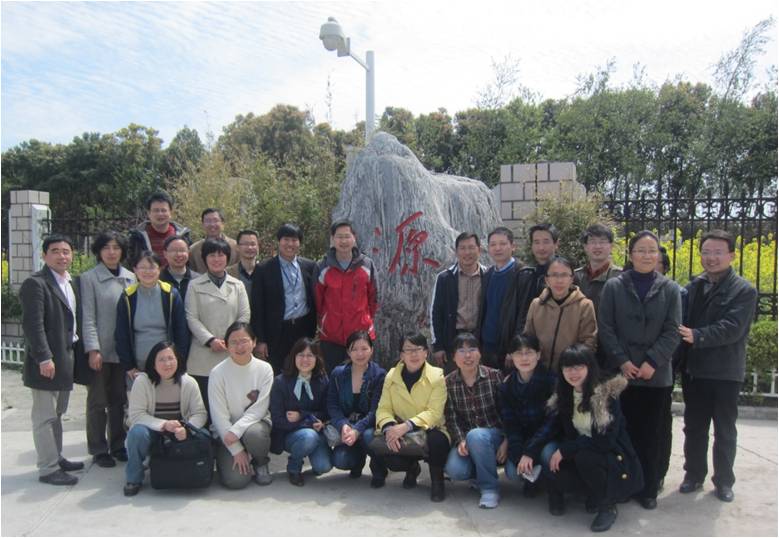最后, 各位老师在上海市转基因生物科普教育基地和我国杂交水稻育种专家袁隆平题写的“源”字前合影留念。