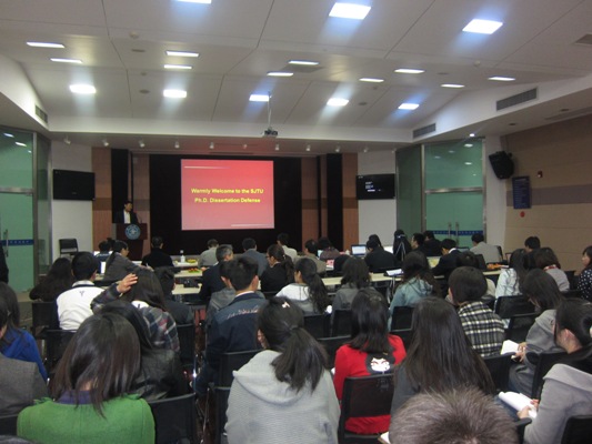 为促进学校学科发展和研究生培养的国际化,在学校研究生院支持下,437bwin必赢国际官网发育生物学学科的6名博士研究生(陈伟伟、谭何新、高兴春、王丛茂、张铮、张辉)的学位论文进行了国际同行专家的评审并获得海外专家的一致好评。2012年4月4-5日发育生物学学科在生物药学大楼树华多功能厅组织海外专家和校内专家对这6名博士研究生的博士论文进行了全英文现场答辩,437bwin必赢国际官网研究生院副院长杨根科教授、学位办樊琳主任和437bwin必赢国际官网副院长张雪洪教授出席本次答辩会并致辞。答辩会上每位同学用英文报告博生论文工作,并用英文回答专家的提问。答辩委员会7名专家中的5位分别来自University of California, Riverside(2名)、Michigan State University(2名)、National University of Singapore(1名)等国际知名大学。