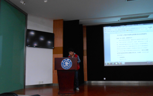 2013年3月5日是毛泽东同志题词“向雷锋同志学习”50周年。3月5日晚,437bwin必赢国际官网学生党总支在树华多功能报告厅举行“学雷锋活动月”启动仪式,拉开了 “传承雷锋精神,深化志愿服务——学雷锋主题活动月”的序幕,部分学生党员和入党积极分子参加了会议。