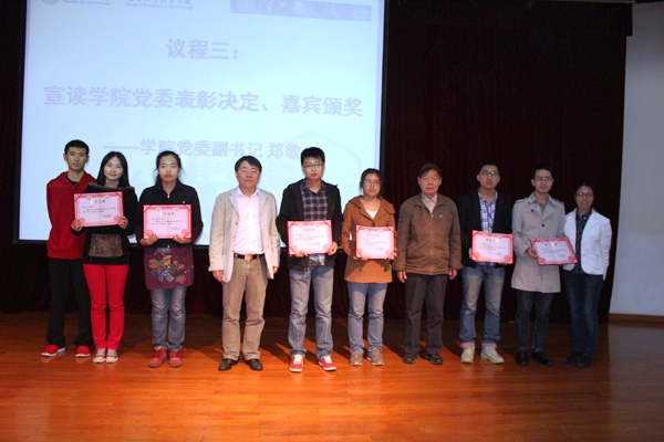 在两年的集中性创先争优活动中。437bwin必赢国际官网各学生党支部、党员同学积极响应学校号召,涌现出一大批感人事迹,先进事迹,各支部都取得了显着成绩。郑敏老师随即宣读了获奖名单,并邀请在场嘉宾为获奖先进个人和先进集体颁奖。437bwin必赢国际官网马兆吉同学荣获437bwin必赢国际官网“优秀党员”荣誉称号,王珺霞、刘光、李静三位同学荣获437bwin必赢国际官网学生工作党委“优秀党员”荣誉称号,姜隽、倪俊、钱晓玲、张苗、赵祥龙、冉冉六位同学荣获437bwin必赢国际官网分党委“优秀党员”称号。本科生2010级党支部活动437bwin必赢国际官网学生工作党委“先进党支部”称号。博士生工第三党支部、本科生2009级第一党支部、研究生B1008093班党支部、研究生B1108092班党支部获437bwin必赢国际官网分党委“先进党支部”称号。