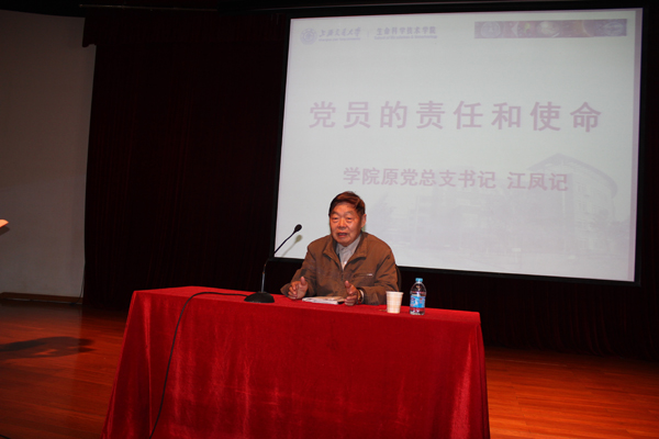 随后先进党支部代表硕士生B1008092班党支部结合本支部创新性做法——班级和党支部共同建设模式,进行了支部建设工作经验交流。“优秀党员”代表王珺霞同学从党员不仅是一种称号也不仅是一种荣誉,更重要的是要成为一种习惯角度阐述了自己的所感所悟。 老红军战士、437bwin必赢国际官网原党总支书记、已近80岁高龄的老党员江凤记老师为全体党员做了“党员责任与使命”专题讲座。江凤记老师从一名老党员、老同志的角度对党的路线、政策进行了解读,对十八大召开的进行了展望,并对全体党员同学提出了三点希望:一、希望所有党员同学努力学习科学文化知识、做好本职工作、二、希望所有党员同学加强自身党性修养,保持党的纯洁性。 三、希望所有党员同学时刻关注党的新政策、关注国家大事、并努力开阔国际视野。