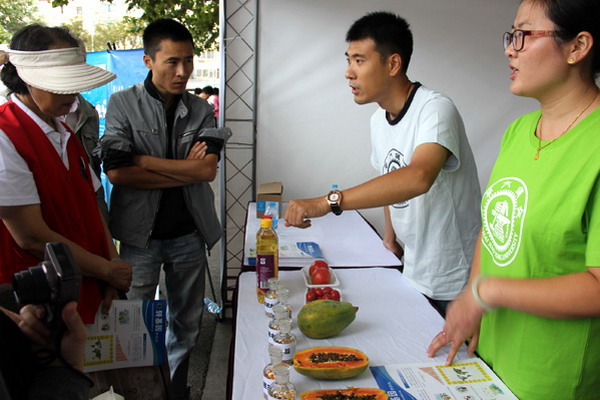 上午8:30,上海交大科学商店及国家转基因生物分子特征验证测试中心的科普志愿者们便抵达闵行体育公园准备好了内容丰富的科普展板、转基因明白纸和转基因植物及相关制品实物。上午10点左右,活动现场迎来了首次观展高峰。“民以食为天”,食品安全向来都是人们关注的焦点,而近年来层出不穷的食品安全问题,加重了市民们对转基因食品的忧虑。针对市民们心中的忧虑和疑问,志愿者深入浅出地阐明转基因的原理,介绍目前常见的转基因作物及它们与传统作物的区别,转基因食品的安全性原理并说明了国家对转基因食品的政策。经过详细的讲解和生动的实物展示,观展市民表示对于转基因食品有了更加深刻的了解,消费时也会更加理性地选择。通过本次活动,437bwin必赢国际官网向市民传播更前沿、更深刻的转基因科学知识,进而客观地评价转基因对我们生活的影响和改变。