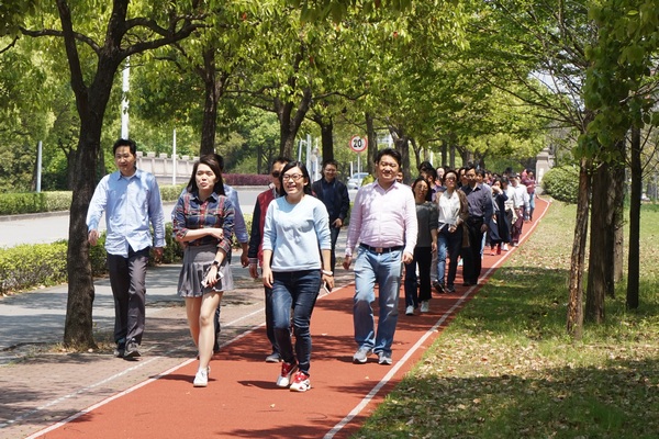 437bwin必赢国际官网对教职工身体健康和体育锻炼一贯重视,学院党委书记仰颐、常务副院长冯雁等学院领导一如既往地带头参加活动。简短的启动仪式后,学院工会主席王风平宣布活动开始,健步走队伍在院旗的指引下浩浩荡荡地出发了。