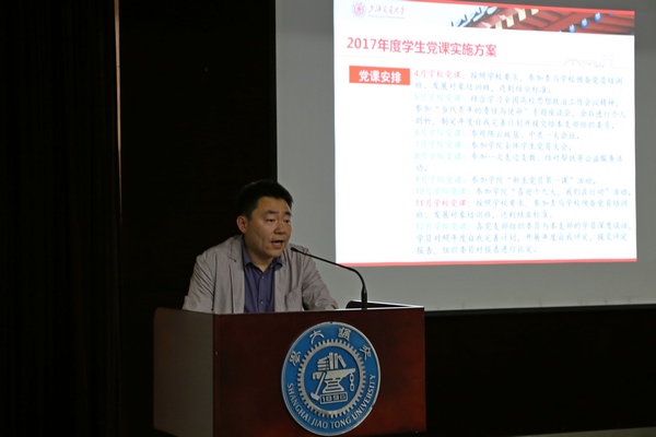 李文纯介绍了学院2017年学生党课方案,要求大家深入贯彻党中央“两学一做”和团中央“一学一做”学习教育工作要求,号召广大青年“不忘初心跟党走”,通过入党这一过程全面促进自我成长,努力成为德智体美全面发展的社会主义事业建设者和接班人。