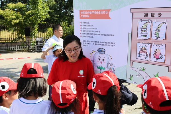 生物转基因科普教育基地的志愿者们耐心地为华东师范大学附属紫竹小学的师生们介绍了转基因食品的基本知识,并一一解答了他们的疑问。