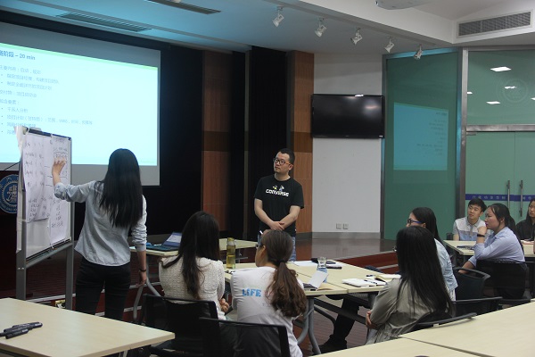 段利丽与苏欣老师带领同学们体验公司运营的具体情境,共同探讨公司价值链和企业竞争优势。在企业运营游戏中,同学们进一步体会与客户沟通和销售的情境,对企业运营有了具体化认识。