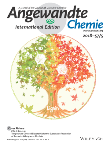近期,国际著名学术期刊Angewandte Chemie International Edition以前封面文章(front cover)的形式发表了437bwin必赢国际官网、微生物代谢国家重点实验室许平教授团队在可再生资源利用领域的最新研究进展“Temperature-directed biocatalysis for the sustainable production of aromatic aldehydes or alcohols”。陶飞副研究员为共同通讯作者,博士后倪俊和硕士生高琰琰为共同第一作者。