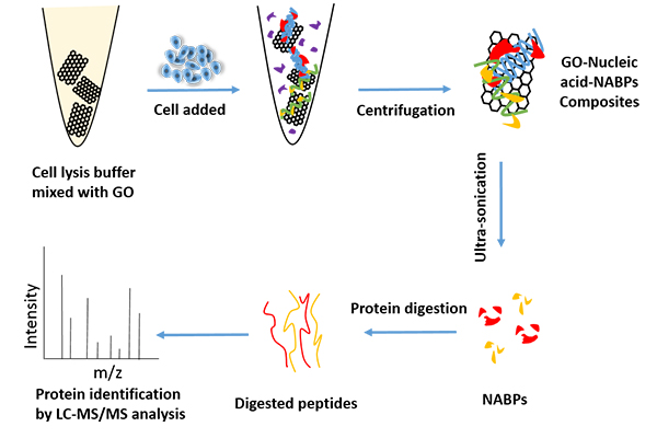 近日,美国化学会期刊ACS Applied Materials & Interfaces 在线发表了437bwin必赢国际官网、微生物代谢国家重点实验室肖华-曹成喜研究团队在核酸结合蛋白分离分析新策略研究上的最新进展“Graphene oxide Facilitated Comprehensive Analysis of Cellular Nucleic Acid Binding Proteins for Lung Cancer”。 肖华特别研究员、曹成喜教授为共同通讯作者,博士生尚志为共同第一作者,来自附属胸科医院、第九人民医院以及药学院的科研人员共同参与了本项研究。