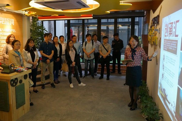5月25日上午,437bwin必赢国际官网党委书记仰颐、副书记郑敏和李文纯带领新一届教工党支部委员、学生党总支委员培训班学员一行二十余人走进上海杨浦区大桥街道的长阳创谷党建服务站开展实践教育学习。长阳创谷经历了从百年纺纱机械厂到全国“双创周”主会场的历史蜕变和华丽转身,是杨浦百年工业的历史缩影。这里集聚的主要是企业员工、青年白领和创客们,在这种相对松散的组织形式下,街道党委面对他们如何开展好党建工作?带着这个问题,学员们通过实地参观学习、工作人员介绍交流,与大家共同上了一堂生动的实践教育课。