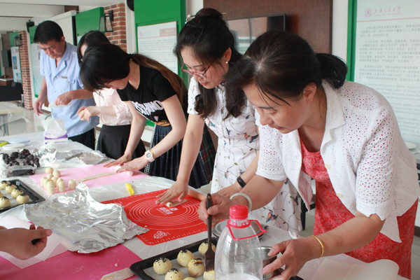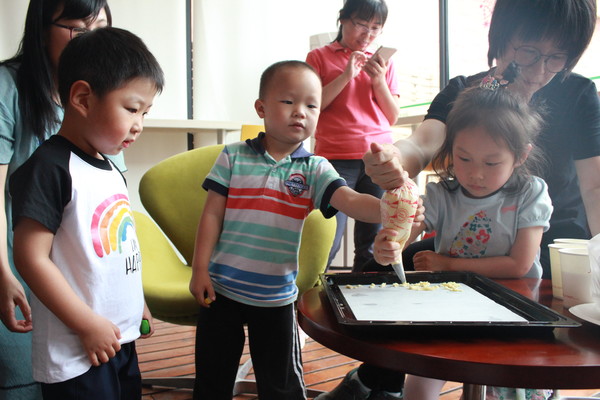活动特邀文选楼的物业经理兼厨艺大师和茶艺师张雪梅和搭档西点大师小蒋经理现场讲授。在烘培师指导下,教工和孩子一起动手制作饼干和装饰蛋糕,让孩子在制作工程中充分发挥想象力,锻炼孩子的动手能力,收获知识和欢乐。一个个精美可爱的饼干出炉将活动推向高潮。