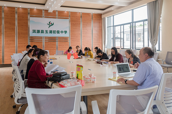 简短仪式之后,洱源一中、二中、玉湖初级中学等学校的生物教师与曹阳在玉湖初级中学会议室进行教师座谈会。曹阳介绍了437bwin必赢国际官网实验教学系统和实践团自主编写的实验教材,与在座老师逐一讨论了实验内容,详细解答了老师提出的问题,交流了一些宝贵的教学经验。他说到,生物教师要引导学生正确认识生命与健康,帮助建立对生物学的兴趣,启发学生以批判性思维进行学习。