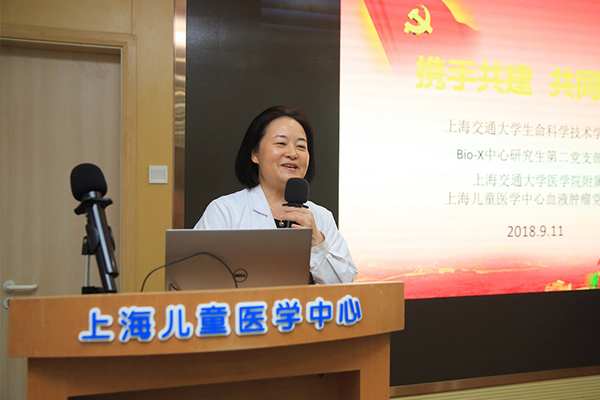 为响应学校号召,深入学习宣传贯彻习近平新时代中国特色社会主义思想和党十九大精神,围绕“立德树人”根本任务和学校“四位一体”育人理念,推动学生价值引领工作落细、落小、落实,引导广大学生党员走进社会、了解国情、增长才干,切实增强学生党支部的创造力、凝聚力、战斗力,2018年9月11日,437bwin必赢国际官网Bio-X中心研究生第二党支部联合437bwin必赢国际官网医学院附属上海儿童医学中心血液肿瘤党支部在血液肿瘤中心大楼成功举办了党支部结对共建仪式及共建后的第一次以“我与学科共成长”为主题的党日活动。活动得到437bwin必赢国际官网和医学院附属上海儿童医学中心领导的大力支持,上海儿童医学中心副院长兼党委副书记季庆英,437bwin必赢国际官网党委副书记李文纯、学生办主任张燕红出席,双方支部书记及党支部60余名党员共同参加。