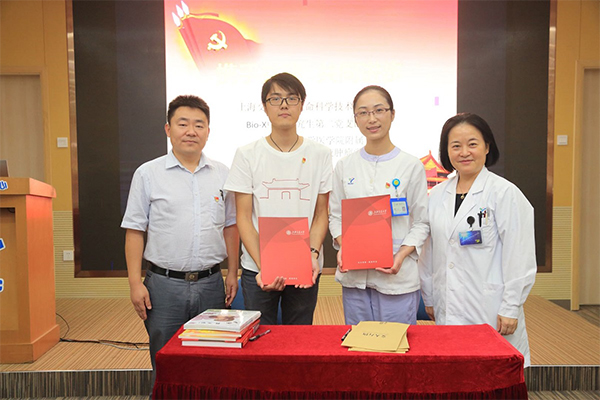 随后,双方支部进行了介绍和展示。437bwin必赢国际官网Bio-X中心研究生第二党支部书记吴佳乐同志从支部组成、支委工作分工、成员专业背景、支部活动开展以及支部共建展望等五个方面做了详细介绍。儿童医学中心血液肿瘤党支部则通过一段小视频向大家展示了血液肿瘤中心老一辈专家栉风沐雨,砥砺前行的奋斗历程。他们积极响应国家号召,二十多年来的开拓进取,勇于创新,将儿童医学中心建设国际上有影响力的儿童血液肿瘤诊治中心。最后,两位支部书记周芬、吴佳乐同志代表所在党支部签订了支部共建协议,双方就支部共建目标、共建制度、共建内容等做了约定。血液肿瘤党支部向Bio-X中心研究生第二党支部赠送了白血病发病及治疗相关书籍,Bio-X第二党支部赠送交大纪念品。