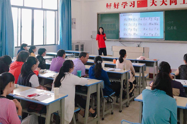 参与茈碧湖镇小学英语教师培训。为提升学生的英语整体水平,洱源县茈碧湖镇计划2018年起开展小学英语教学,需要一批能说会教的小学英语教师。实践团了解到实践地的需求,于7月24日至7月26日在洱源县茈碧湖镇中心学校的协调下,参与了当地英语教师的部分培训工作。实践团成员以小组为单位,从最基础的英文字母结合多媒体设备对乡村英语教师进行了音标教学,并为教师们提供了丰富的英语学习资料,助力当地小学英语教学的顺利开展。