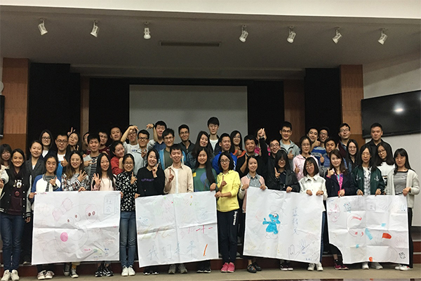随后,同学们被随机分为四个小组,分别进行团队组建。每个小组在规定时间内选出队长、队秘、队花、计时员、吉祥物,确定队名、口号、队歌和Logo,绘制展板,并进行团队展示。同学们积极参与,团结协作,组建了“CNS”、“地表最萌”、“蓝精灵”、“生科一十一”等四个各具特色的团队,并在团队展示中秀出了自己的风采。