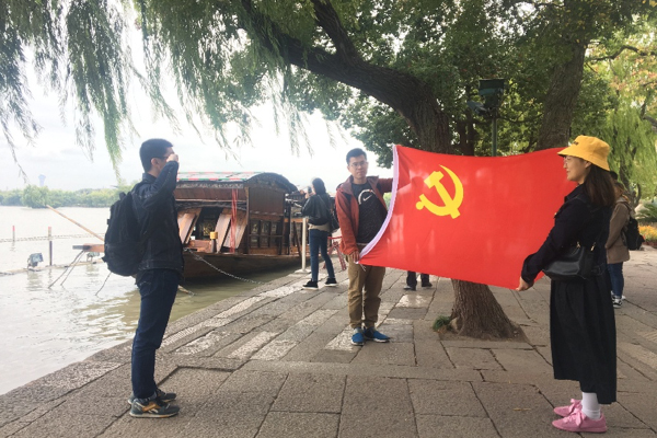 随后,支部成员乘轮渡来到湖心岛,瞻仰了真正的“红船”。微生物第二研究生支部预备党员卢烨面对党旗庄严宣誓。