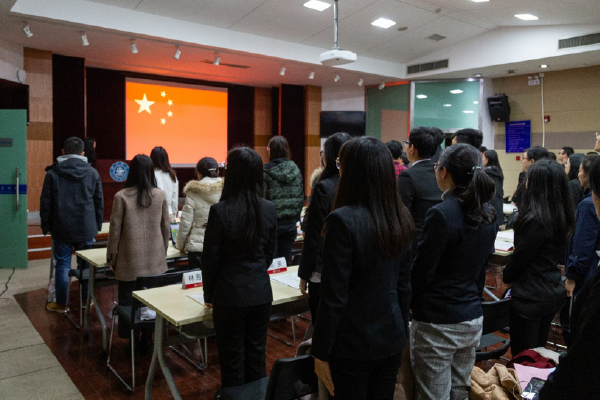 大会在庄严的奏唱国歌中拉开帷幕。