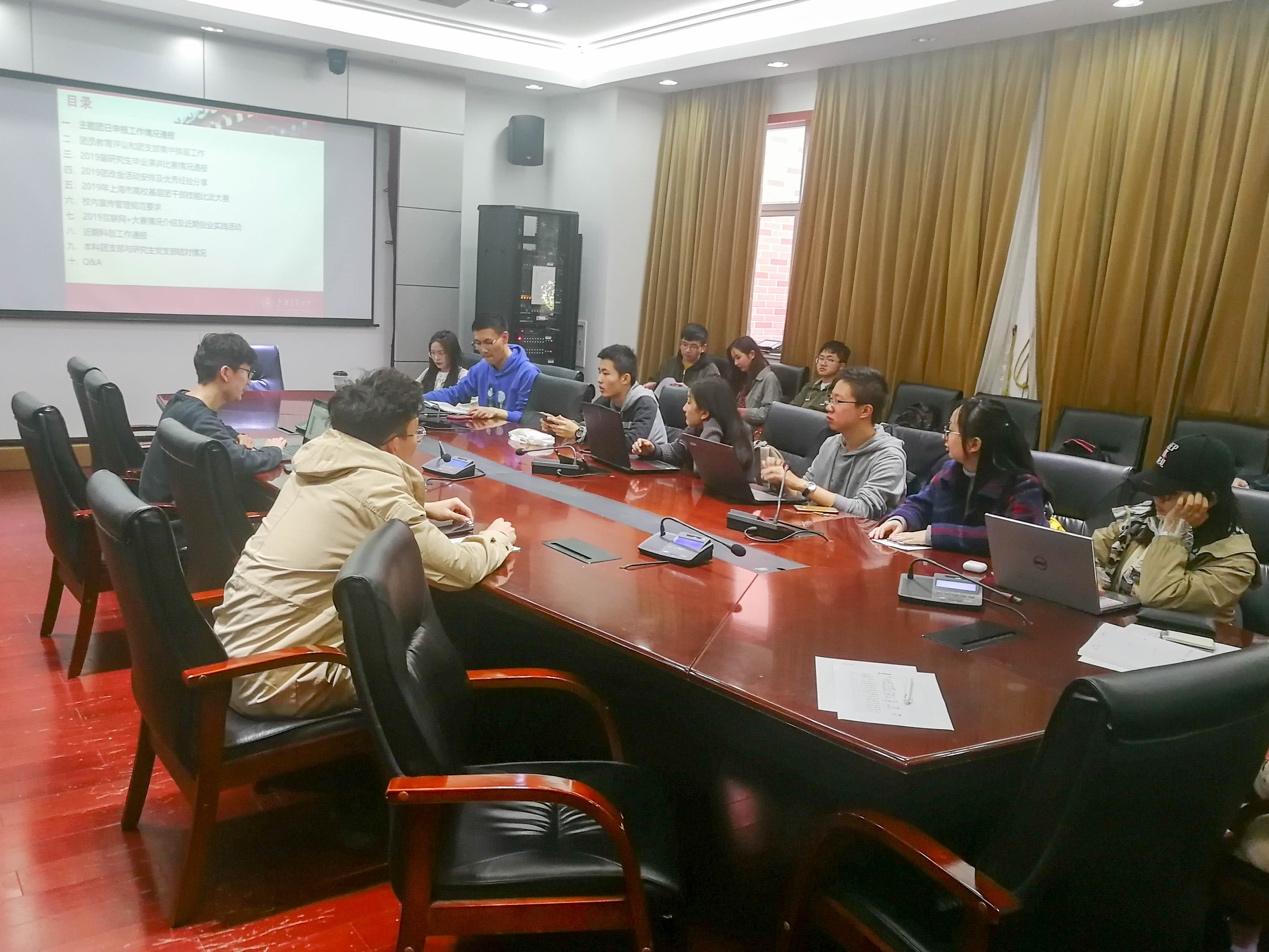 焦井泉介绍了2019年上海市首届高校基层团干部技能比武大赛相关事宜,鼓励各团支书积极参加。同时也传达了校内宣传管理规范要求,并对近期组织工作进行梳理。
