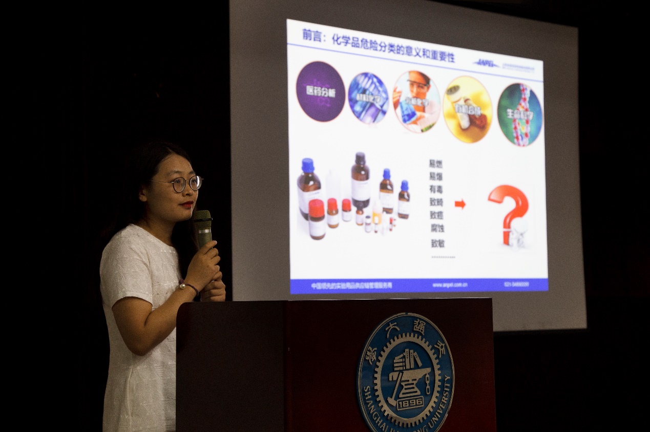 上海安谱实验科技股份有限公司实验室安全培训师李会做了主题为“实验室危险化学品和安全防护”的专题讲座。详细介绍了危险化学品分类、标志、判断,实验室化学试剂管理及实验室安全防护产品介绍及正确选型 。