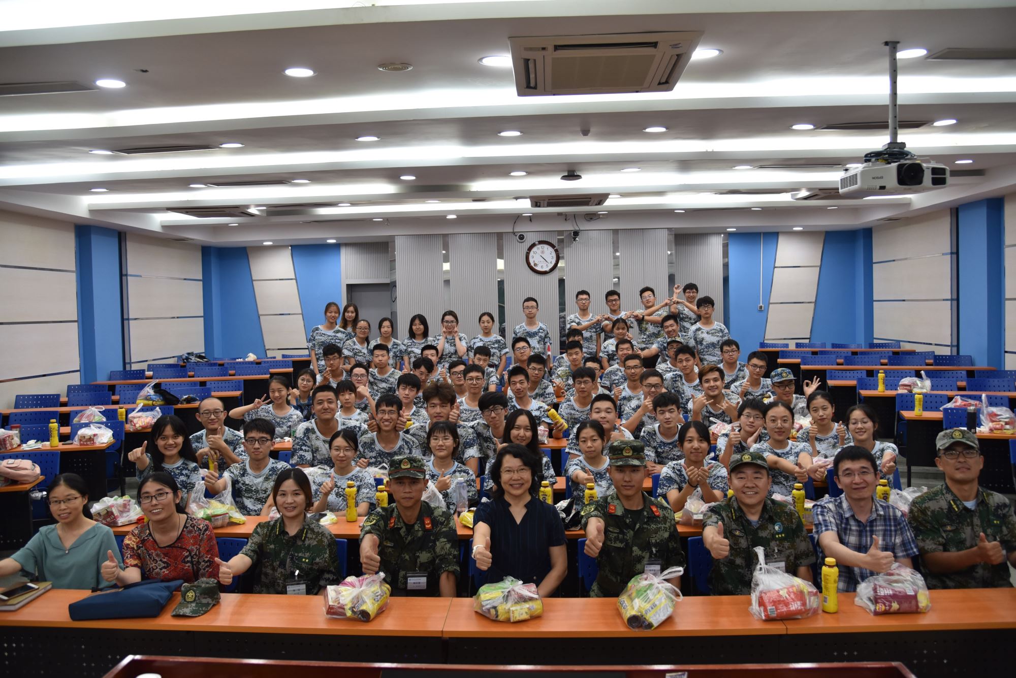 8月28日下午,437bwin必赢国际官网2018级本科生军训中期慰问会在上院315举行。学院常务副院长冯雁,2018级本科生班主任王晓雷、张风丽、黄婷婷出席并慰问学院参训师生和部队教官。军训团18连连长杨先林,23连连长钟华斌和学院全体参训师生参加慰问会。会议由院党委副书记、2018级学生军训团三营教导员李文纯主持。