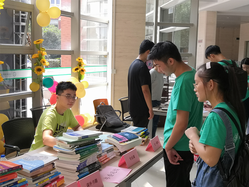 生科团学联青志队组织了“生科传承,书香延续”赠书活动,将2019届毕业生捐赠的教科书、参考书及笔记赠送给到场的新生。
