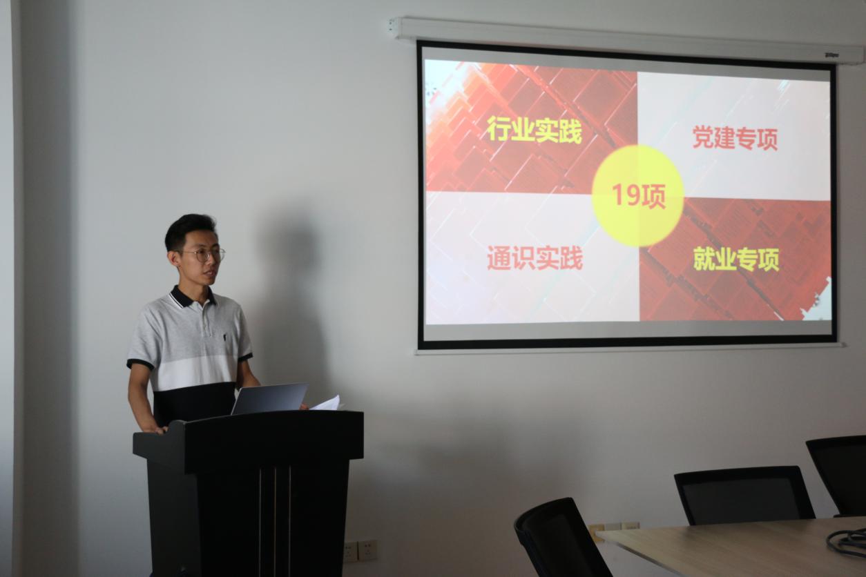 首先,岳鑫介绍学院2019年暑期社会实践总体情况及评审规则。每支团队有5分钟项目展示和2分钟评委提问,评审组从项目意义、成员组成、分工情况、项目影响力和实践内容五个方面进行考核,为项目打分,同时指出各实践团有待改进的地方并提出建议,帮助同学们更好地做出总结,为未来开展社会实践活动积累更多经验。