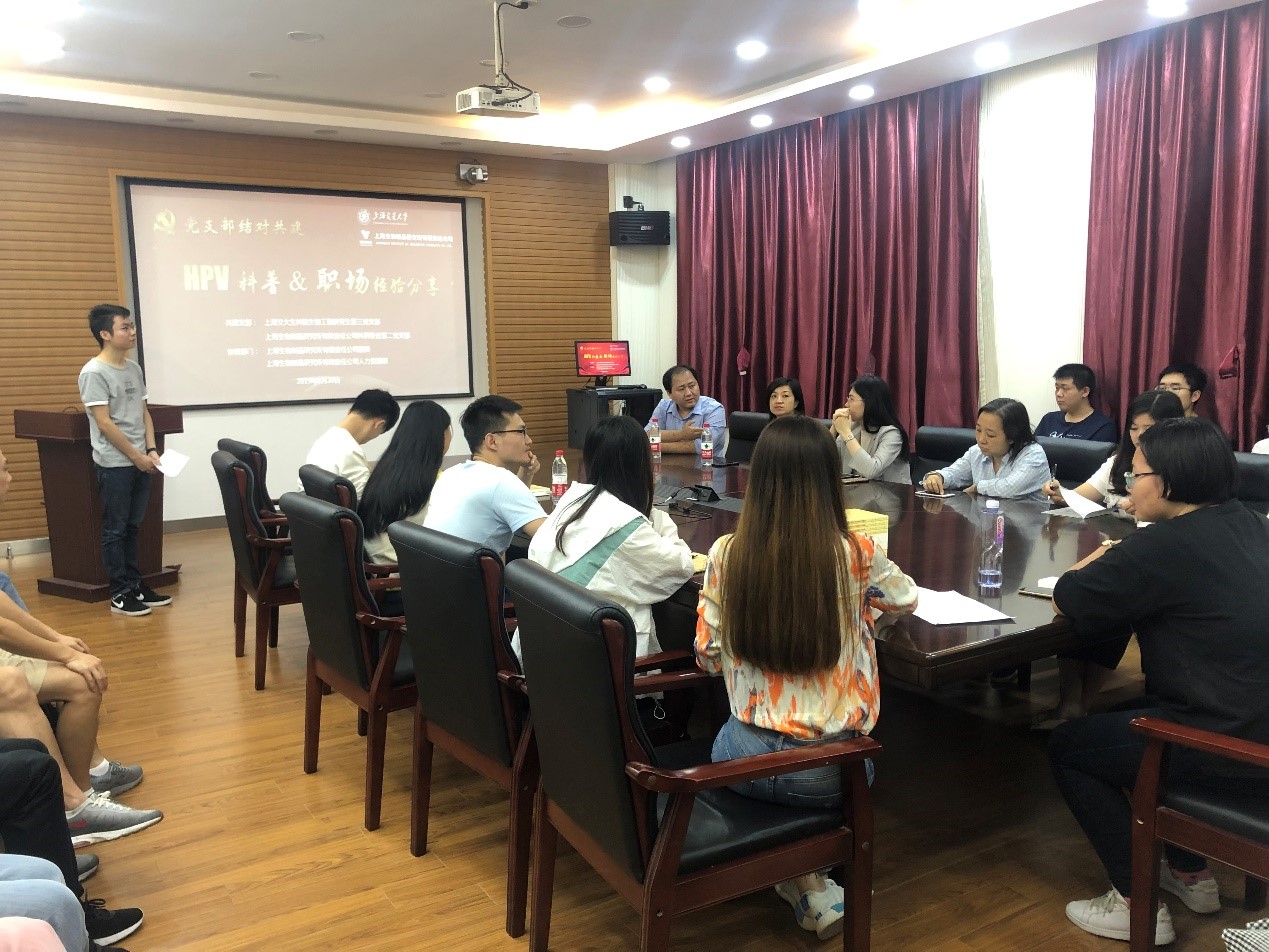 为进一步落实“共行计划”项目规划、丰富双方支部共建活动形式,发挥基层党支部战斗堡垒作用,2019年9月20日下午,437bwin必赢国际官网生物工程研究生第三党支部与上海生物制品研究所有限责任公司科研第二党支部联合开展 “HPV科普及职场经验宣讲”共建活动,公司人力资源部经理曹婕、团委书记曹𣲗,及双方支部全体党员同志出席本次活动。