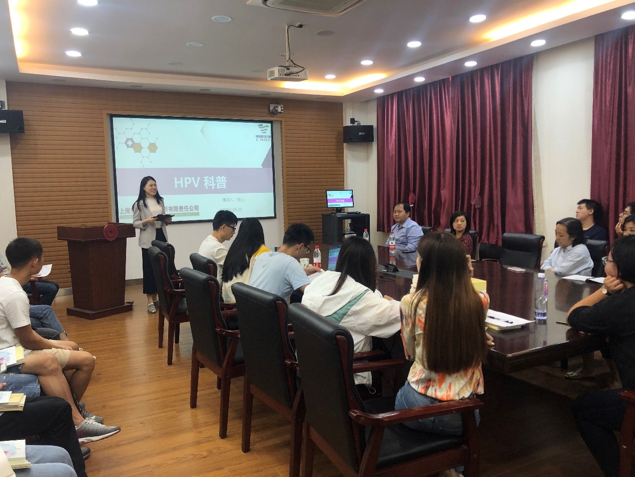 上海生物制品研究所研发部第二研究室任沁女士以生物专业为背景,进行HPV(人乳头瘤病毒)与宫颈癌关系的科普宣讲。HPV疫苗是目前能够有效预防宫颈癌的方法,任沁建议女性同志们应定期进行宫颈癌筛查,及早接种适合的HPV疫苗,但最重要的是时刻关注身体健康。同学们就疫苗研制、生产过程的技术问题做了进一步探讨和交流。