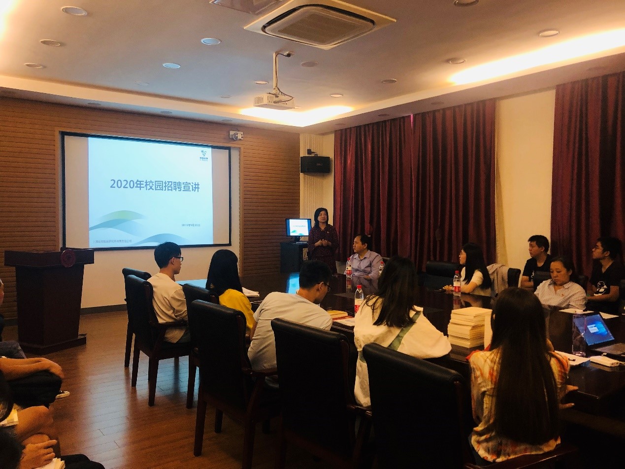 随后,人力资源部经理曹婕女士以“从校园到职场”与各位同学做了分享,希望大家要专注科研,特别要关注自身专业方向与实际岗位的对接,另外,她就学生在校园需培养的各方面能力做了重点说明,并对其他求职注意事项给出了专业化建议和针对性指导。