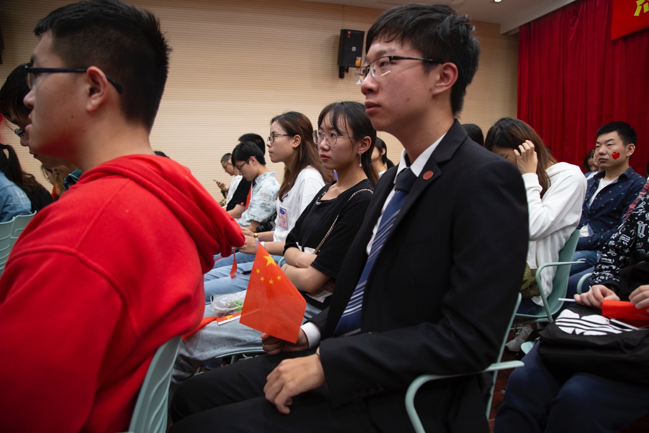 2019年10月1日早8点,437bwin必赢国际官网本科生党支部党员同志们齐聚菁菁堂广场观看升旗仪式。伴随着雄壮的国歌声,同学们目送着五星红旗缓缓升起,不由挥舞手中的小国旗,以传达心中激荡着的爱国之声。