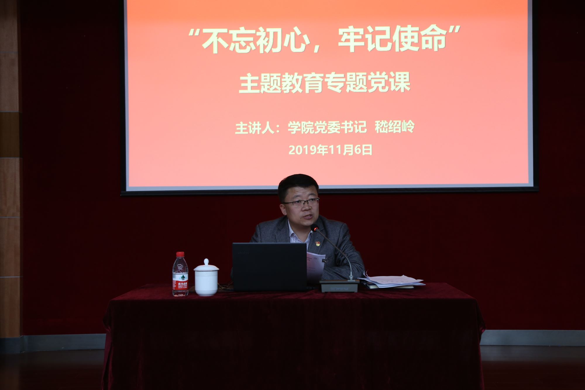 根据校党委“不忘初心、牢记使命”主题教育工作部署,437bwin必赢国际官网党员领导班子成员陆续在对应的党支部、党员中讲专题党课。11月6日,学院党委书记嵇绍岭以《从教学到治学,大学教师职责发挥的实践路径》为主题,为学院全体教职工党员上党课。学校第三巡回指导组副组长陈露君、联络员陈思参会指导。党课由学院党委副书记李文纯主持。