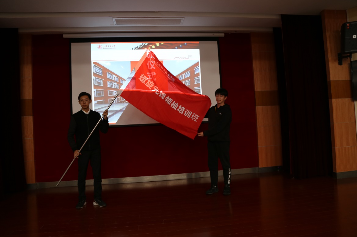 随后,岳鑫详细介绍培训班情况和培养计划,要求同学们端正态度,认真学习,学有所得。随后岳鑫向第一期班长冯宸煦授班旗。