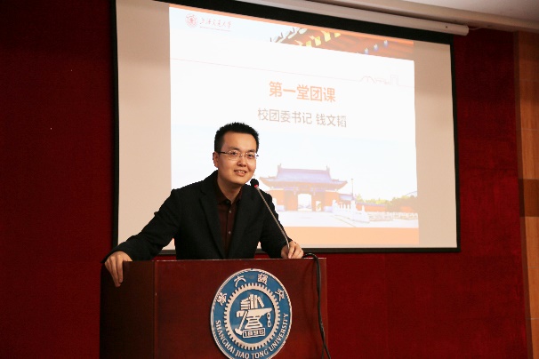 开营仪式之后,钱文韬为培训班学员上第一堂团课。他启发性的回答了学生干部如何培养和体现家国情怀、团员青年怎样体现先进性及当前背景下如何做好价值引领工作三个层面的问题,引发在场学员的深入思考。他娓娓道来,深入浅出的引导学员们树立正确的价值观,鼓励青年不断扩张自我边界,把个人进步与社会发展相融合,发挥学生骨干的标杆作用。