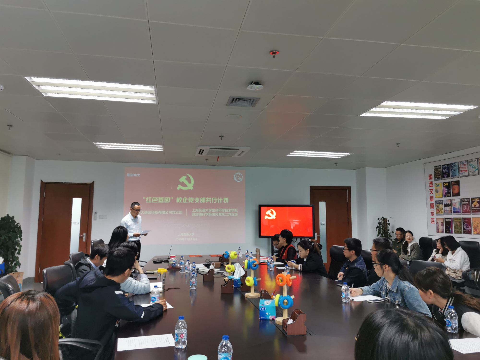 11月13日上午,双方支部在上海华大基因科技有限公司会议室开展结对共建活动。深圳华大生命科学研究院党委副书记、华大集团副总裁杨爽、上海华大基因科技有限公司党支部书记周双涛,437bwin必赢国际官网学生办公室主任、学生党总支书记张燕红,微生物科学系研究生第二党支部支部书记侯佳林及两个支部全体党员同志参加活动。