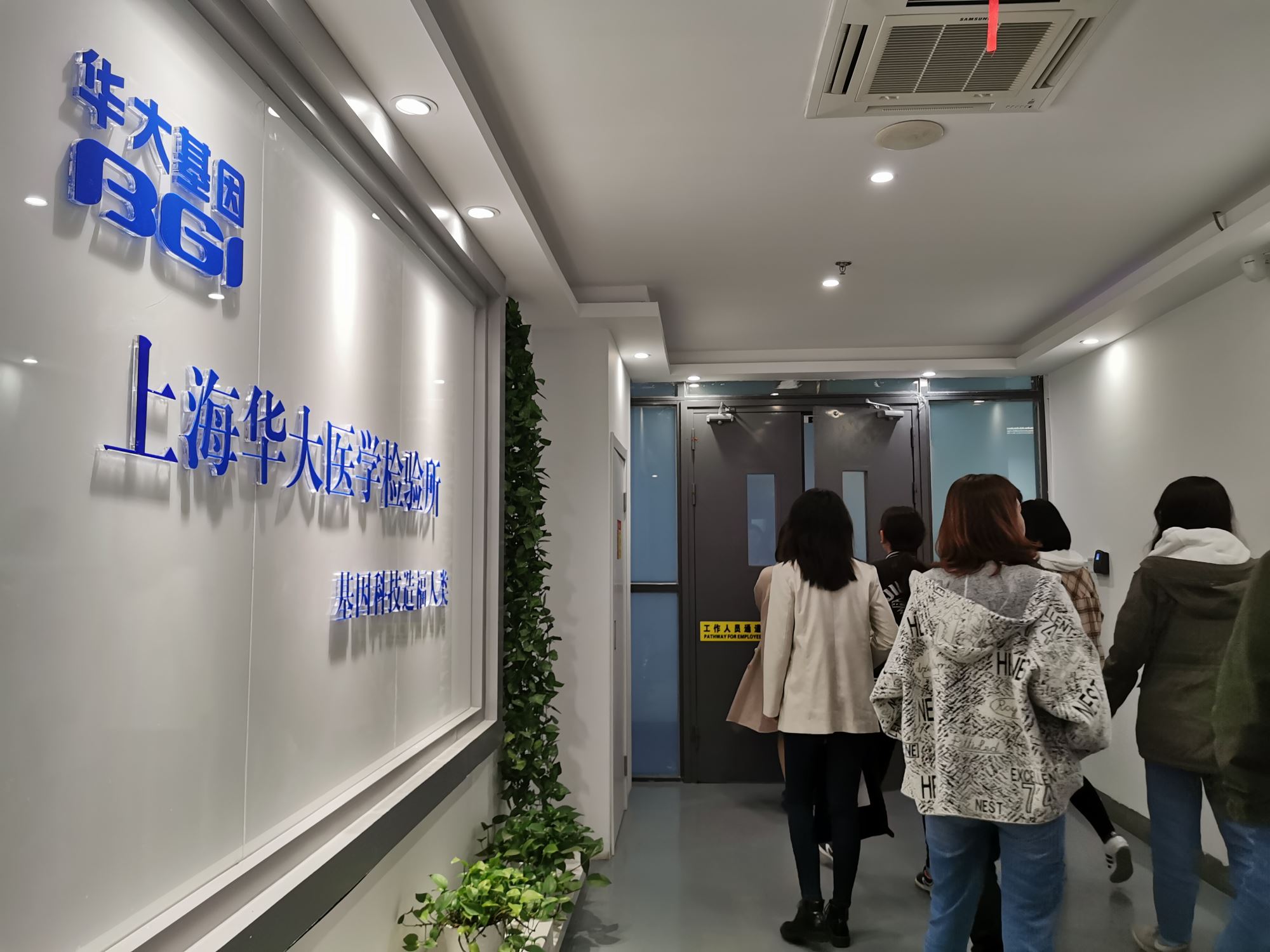 为了进一步了解华大,同学们在周书记的带领下进入上海华大医学检验所参观学习。整个检验所呈“回”字型分布,分为样本区、处理区及检测区。通过实地考察样本测序的流程,同学们对此加深了理解。