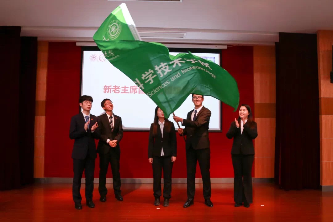 在全体学生代表完成投票后,监票人现场唱票、计票,由总监票人宣布最终选举结果,王一帆、陈星宇、李唯一当选第九届团学联主席团成员,全体代表鼓掌通过。接下来,第八届主席团将院旗传递到新一届主席团成员手中,象征着光荣和责任薪火相传。