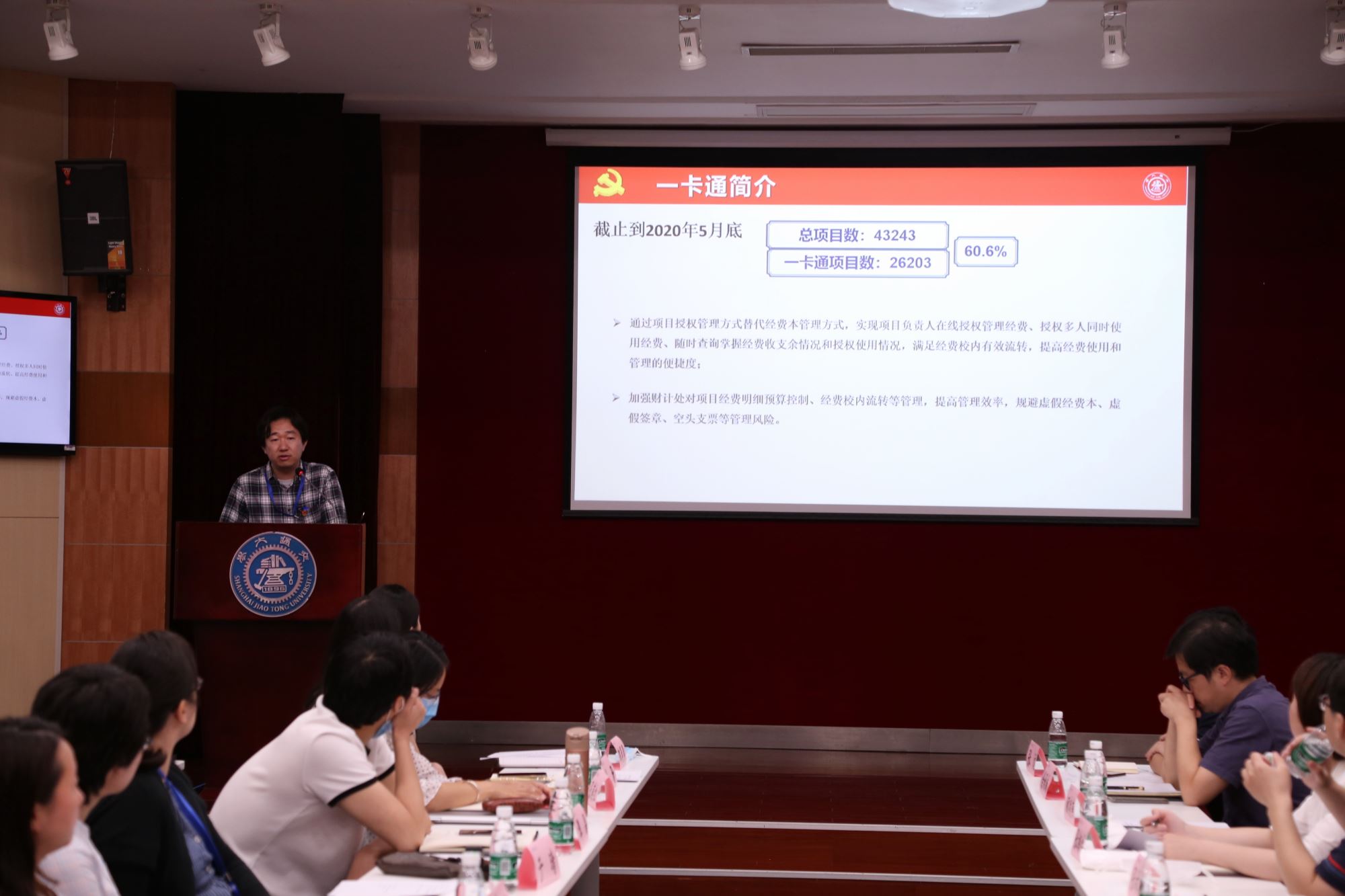 接下来,科研经费科科长徐俊从一卡通概况、项目授权、项目查询、系统设置等方面,针对师生们关注的一卡通业务,进行了详细的介绍。会上,双方针对系统使用中出现的预算调整、授权超额、办公用品报销、授权余额等问题进行了热烈的交流探讨。对老师们提出的多项意见建议,财计处将纳入未来系统改进开发。