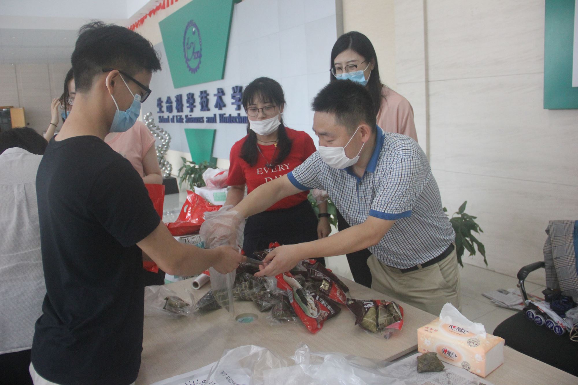 为迎接端午节,助力生科学子科研复工复产,437bwin必赢国际官网举办了“端午传情,浓情粽香”活动,于6月24日中午在学院大厅为复工复产的同学们送上端午节礼物,学院党委书记嵇绍岭、党委副书记李文纯、学生办张燕红、李芳、徐菁苒,博士生兼职思政肖华出席了本次活动。活动由学院研究生会组织承办。