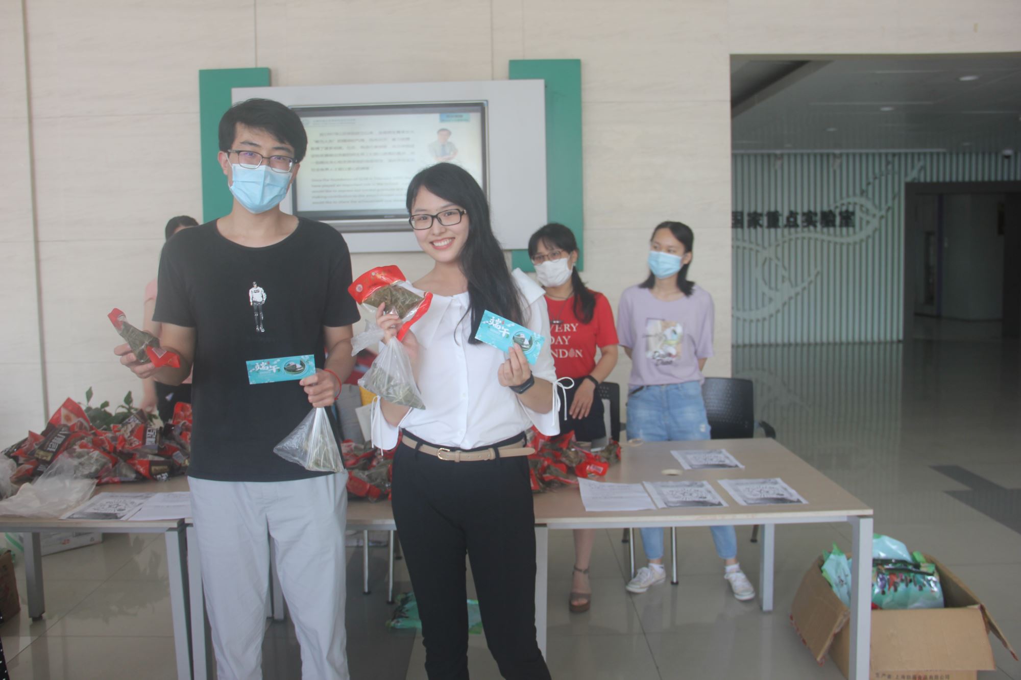 活动中,学院领导和老师们为复工复产的同学们发放粽子,并向同学们送出端午安康的美好祝福。学院研究生会精心准备了“端午小常识”答题活动以及“粽情粽意”端午寄语活动。到场的同学们纷纷扫描二维码参与答题,同时留下寄语寄情端午,现场气氛热烈。