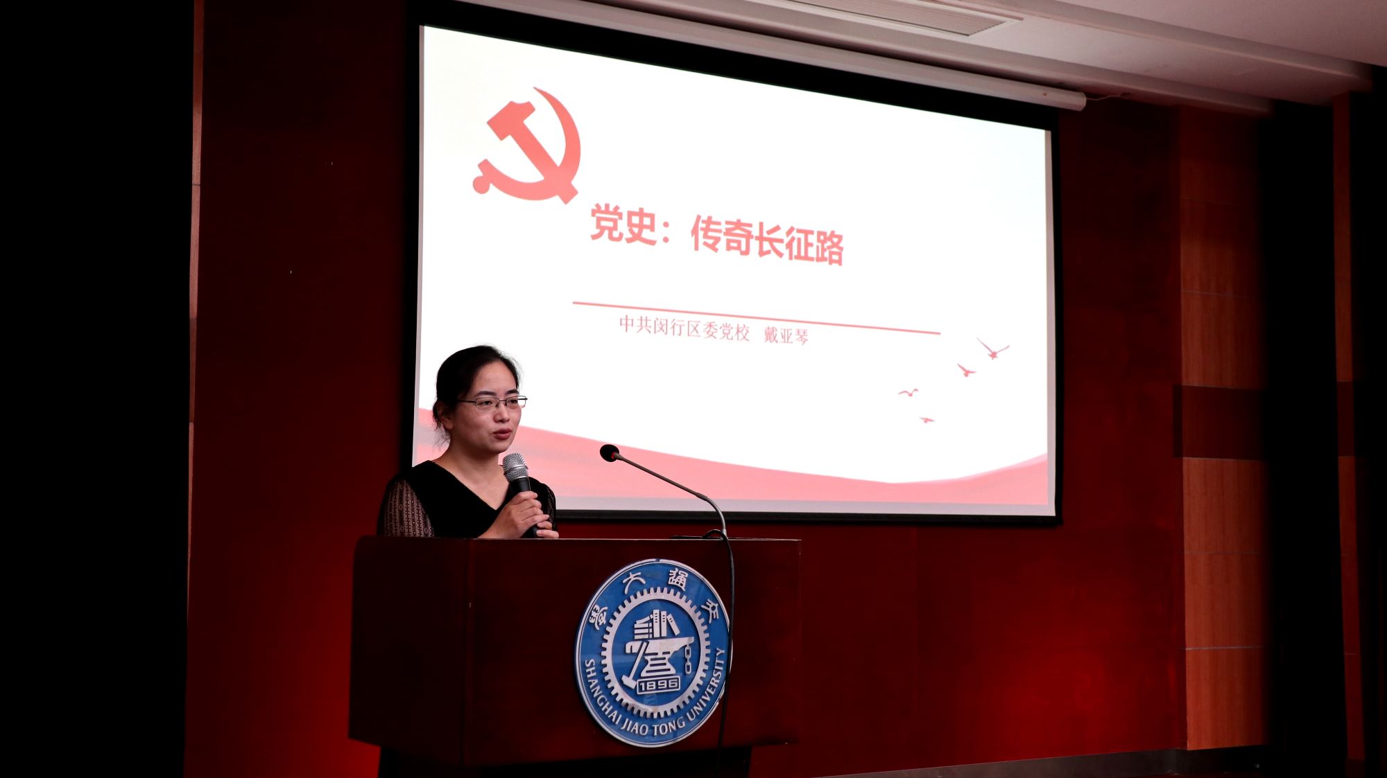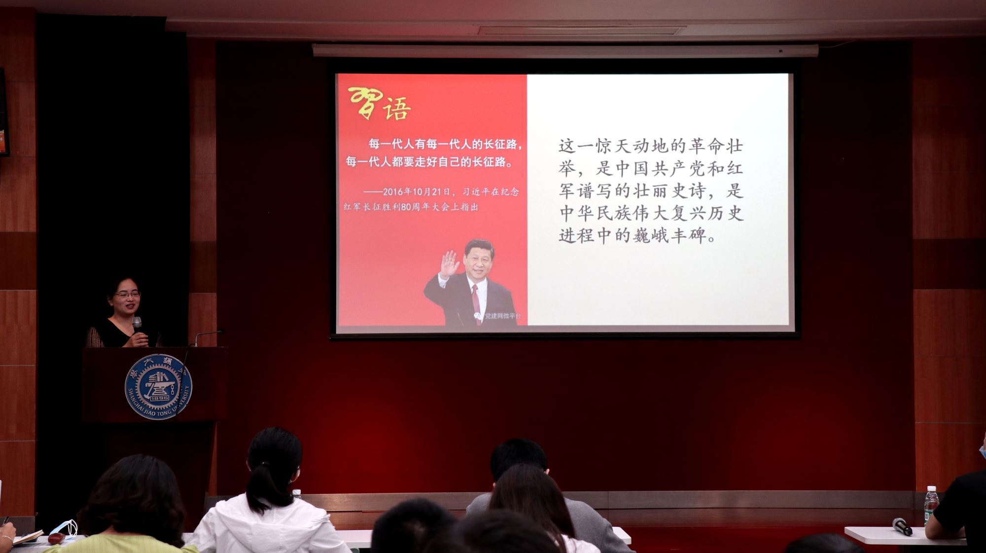 会议邀请了闵行区委党校公共管理教研室讲师戴亚琴为同学们带来“传奇长征路”主题党课。戴老师从长征的时代背景、长征路线图、长征胜利的重大意义以及长征精神内涵四个方面回顾了这一红色征程。